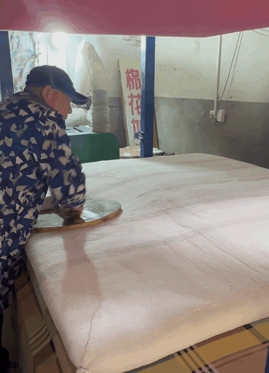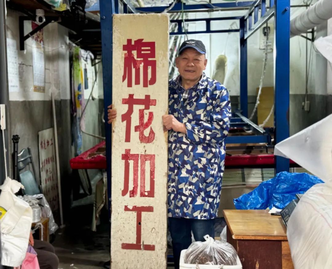 除了雪花膏、棉毛衫这些爆款,汤婆子、防裂袜也是店里的热销单品,多少年来未曾变过。对于许多老杭州人来说,豫丰祥这种“不变”流露出的细节和妥帖,承载了太多难以割舍的情怀。 来杭41年的老师傅,天天从早翻到晚 老杭州很熟的棉花被,年轻人也盯上了 除了豫丰祥,也有杭州人在自家门口,打造自己的“过冬利器”。 运河边的老小区流水苑,现在烟火气十足。从东门走进去,一长溜的沿街商铺,都挂出了自家腌制的酱货。在一排酱鸭腊肉中间,63岁的章师傅正在自己的棉花店里不停忙活。 “老章,这条小被子帮我弹一下哦,小伢儿盖的。”老邻居徐奶奶抱着孙子的垫被走进店里。 “好嘞!”章师傅乐呵呵地接过被子,马上准备开工。虽然已经中午12点,但他也不着急吃饭。 章师傅的店面不大,二十多平方米的屋子里,一台揉棉机占据了大部分空间,墙上没有花哨的装饰,一把上了岁数的弹弓格外显眼,墙角还靠着一张包了浆的磨盘。这些都是章师傅的老搭档,跟在身边十几二十年了,用起来得心应手,干活也是老味道。店里贴着的价目表也是一样,这些年价格一直没涨上去过。 章师傅是金华兰溪人,但跟徐奶奶聊天都说的杭州话,而且讲得蛮正宗。“我来杭州都41年了,天天跟本地人打交道,肯定要会说方言啊。”章师傅眯眼一笑。他1983年就来到杭州,背着弹弓、磨盘走街串巷给大家弹棉花,在流水苑开店也20来年了。“我对杭州毛熟悉嘞,大街小巷我基本上都走过的,名字都报得上来。” 对于这门手上功夫,章师傅早已轻车熟路。他先麻利地拆掉被子最外层的纱布套,将旧棉花细致地分开,随后再把裁剪好的旧棉絮慢慢送进弹棉机里,期间不断加入新棉。几分钟后,机器把一块块棉花弹松,此时的棉花就好像一支正在制作的巨形棉花糖。之后装套、缝装、打包一气呵成。翻新一床棉被,一般要花一个多小时,既是技术活也是体力活。